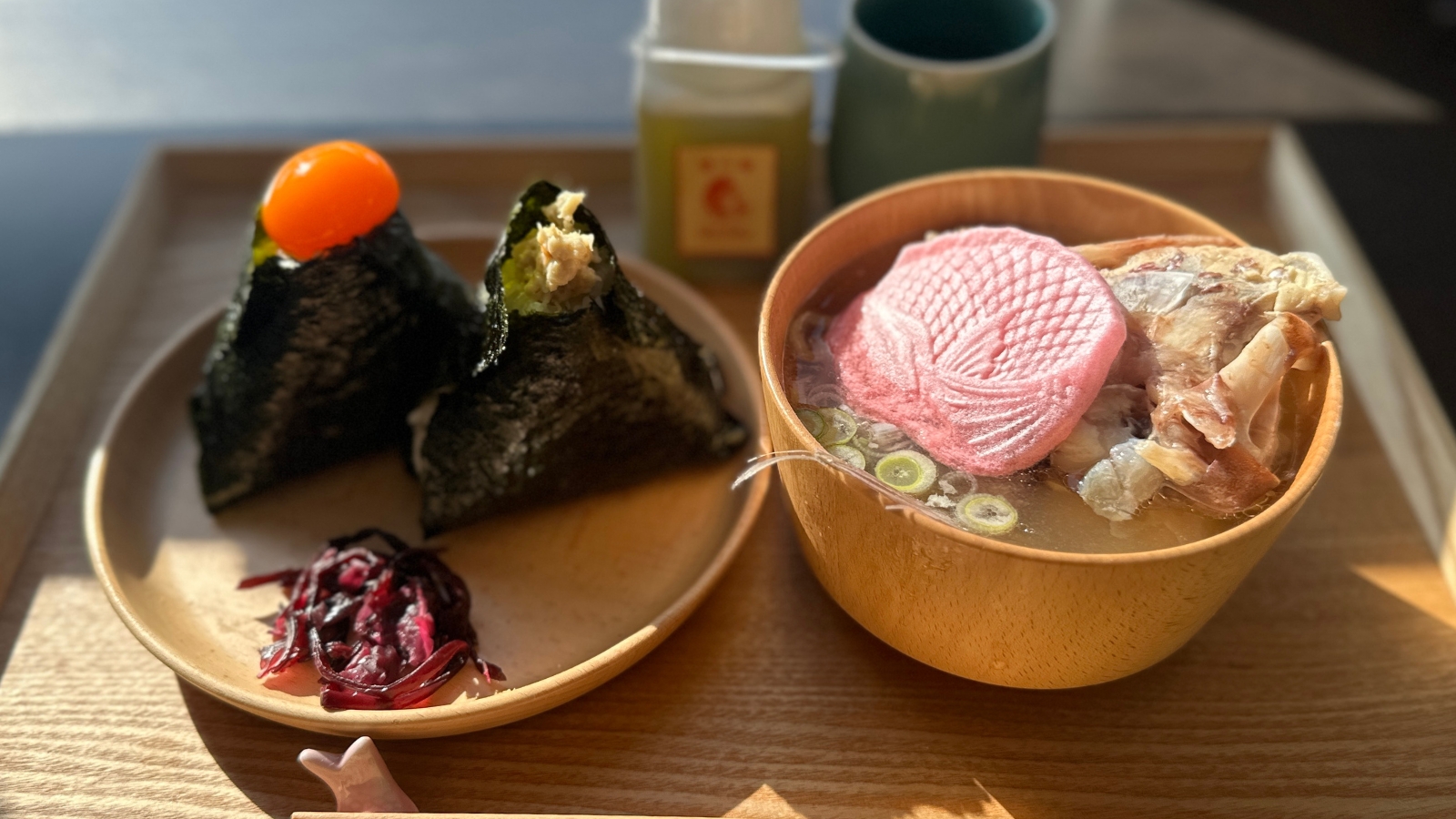 ただ、何の店をやるかは決まっていませんでした。そんなとき、地元の魚卸店の社長から「鯛カブトを活用して新たな名物を作れないか?」と相談を受けました。鯛カブトは美味ですが、加工や流通の手間がかかるため、その多くが未利用部位となっていたのです。その話を聞いたとき、「素朴なあら汁」を思い浮かべました。鯛あら汁を目当てに「また館山に行きたい」と思ってもらえるような店を作りたい。さらに、日常的に地元の方にも利用してもらえるように「おにぎり」を組み合わせたらどうか、と考えました。