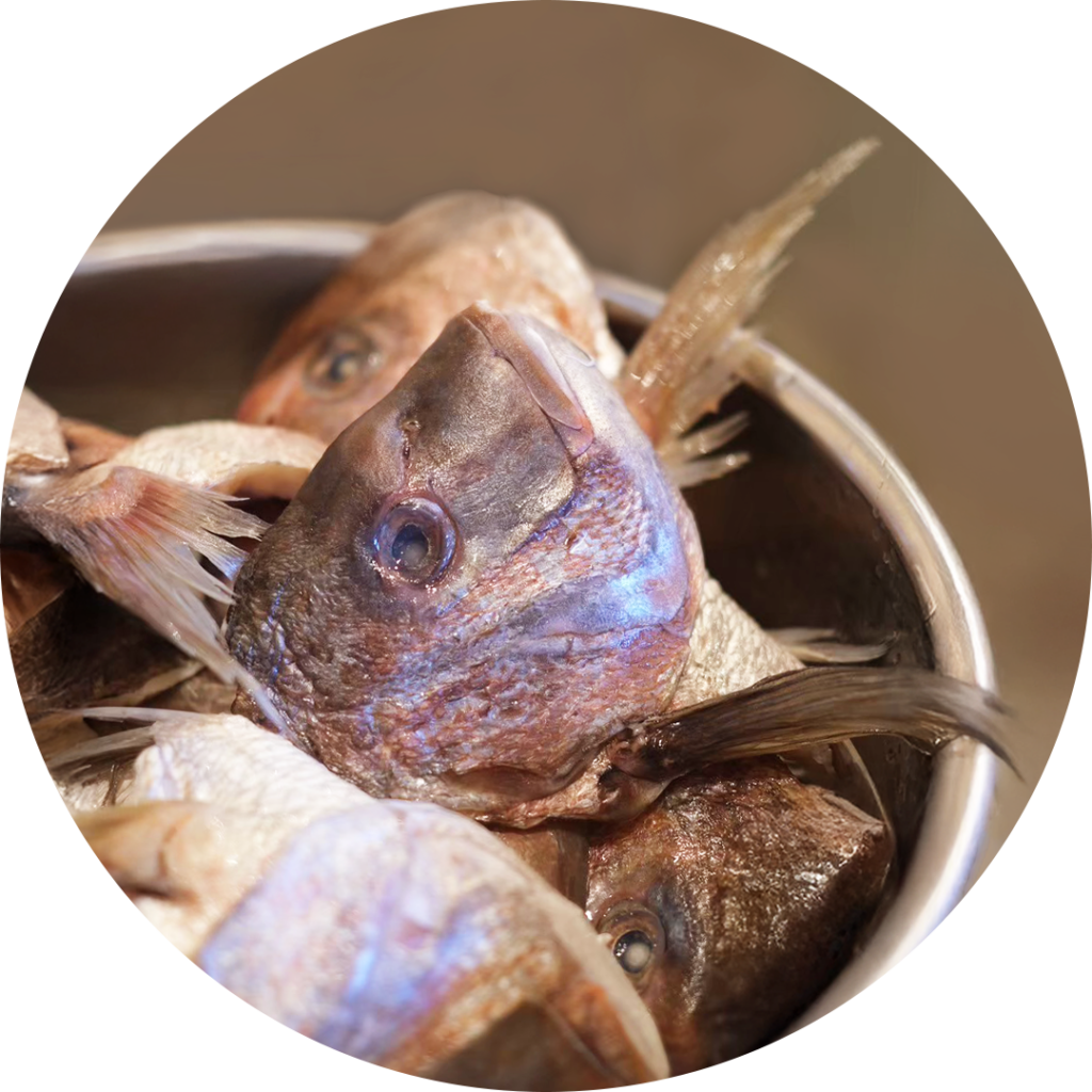 当店の鯛カブトは「鋸南町勝山漁協養殖江戸前真鯛」を使用。潮通しの良い勝山沖で育った真鯛は、身が締まり脂の甘みが特徴です。丁寧に下処理を施した鯛を使い、「てぇじる〈鯛汁〉」や「鯛出汁うどん」「鯛出汁茶漬け」などをご提供。鯛ほぐし身はおにぎりの具材としても楽しめます。
